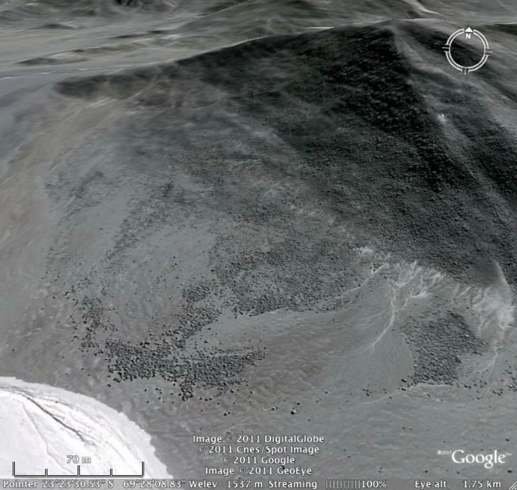 In 2012, as I was walking from the department of geosciences to lunar and planetary lab, I met Jay Quade, and he approached me with a question that I had not really thought about. Jay had been working in Atacama desert where he saw large boulder fields that were the result of active seismicity (see Google Earth figure below). Jay and I looked at similar boulder fields on Moon and Mars and concluded that at least few of the boulder fields on both Moon and Mars could have also formed from similar processes (link).
